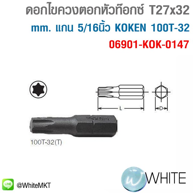 ดอกไขควงตอกหัวท๊อกซ์ T27x32 mm. แกน 5/16นิ้ว KOKEN 100T-3206901-KOK-0147 C23