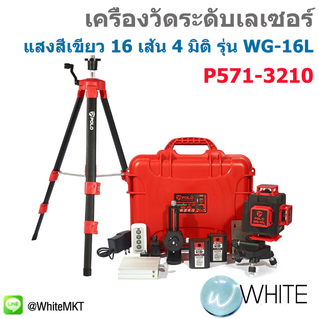 เครื่องวัดระดับเลเซอร์ แสงสีเขียว 16 เส้น 4 มิติ รุ่น WG-16L แสงหมุนรอบด้าน 360 องศา พร้อมขาตั้ง 1.2 เมตร IP-54 (โปโล POLO) P571-3210