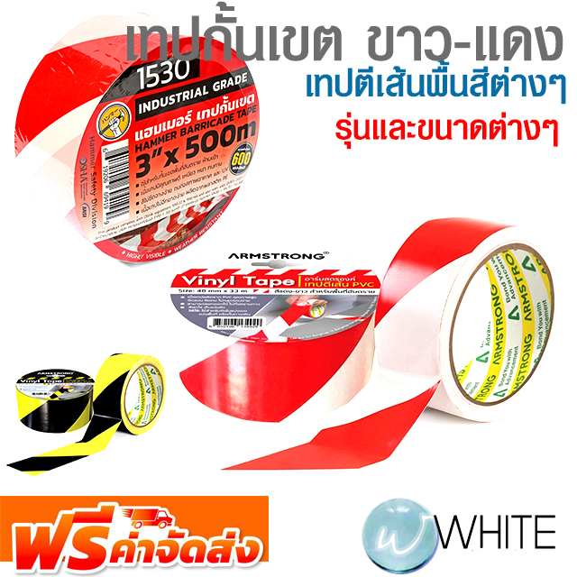 เทปกั้นเขต ขาว-แดง เทปตีเส้นพื้นสีต่างๆ รุ่นและขนาดต่างๆ ยี่ห้อ HAMMER LION จัดส่งฟรี!!!