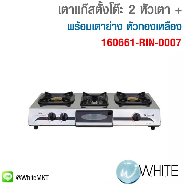 เตาแก๊สตั้งโต๊ะ 2 หัวเตา พร้อมเตาย่าง หัวทองเหลือง + หัวเทอร์โบ RINNAI Rl-514E 160661-RIN-0007 C23