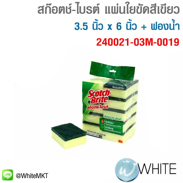 สก๊อตช์-ไบรต์ แผ่นใยขัดสีเขียว 3.5 นิ้ว x 6 นิ้ว + ฟองน้ำ #7012809506 3M XN002036152240021-03M-0019 C23
