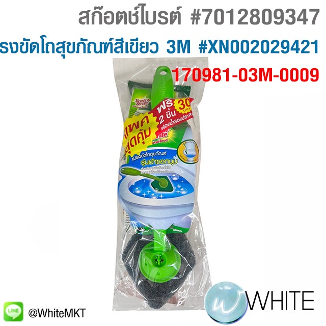 สก๊อตช์ไบรต์ #7012809347 แปรงขัดโถสุขภัณฑ์รุ่นเข้าซอกสีเขียว แถมฟองน้ำใยขัด 3x4 *2 ชิ้น 3M #XN002029421170981-03M-0009 C23