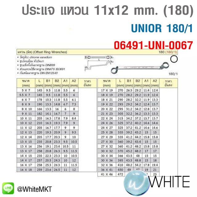 ประแจ แหวน 11x12 mm. (180) UNIOR 180/1 06491-UNI-0067 C23