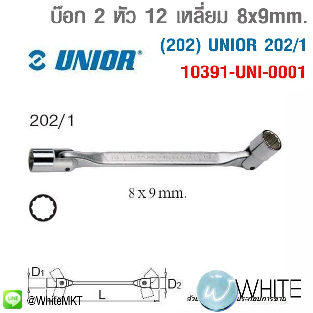 บ๊อก 2 หัว 12 เหลี่ยม 8x9mm. (202) UNIOR 202/1 10391-UNI-0001 C23