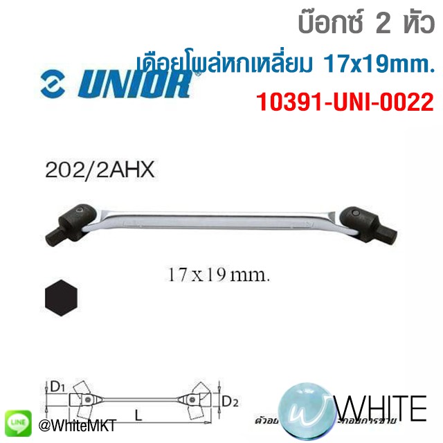 บ๊อกซ์ 2 หัว เดือยโผล่หกเหลี่ยม 17x19mm. (202AHX) UNIOR 202/2AHX 10391-UNI-0022 C23