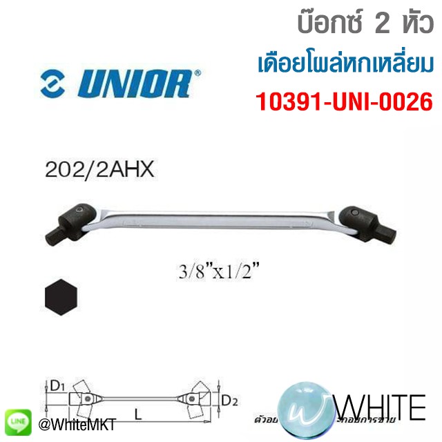 บ๊อกซ์ 2 หัว เดือยโผล่หกเหลี่ยม 3/8นิ้วx1/2นิ้ว (202AHX) UNIOR 202/2AHX 10391-UNI-0026 C23
