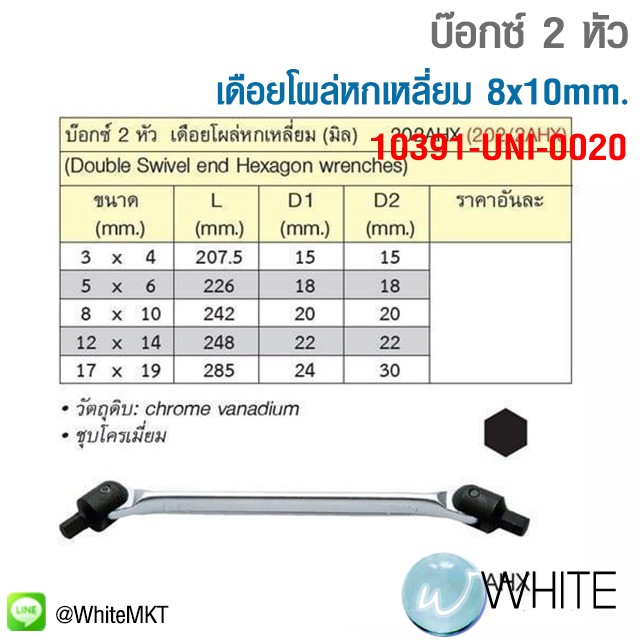 บ๊อกซ์ 2 หัว เดือยโผล่หกเหลี่ยม 8x10mm. (202AHX) UNIOR 202/2AHX 10391-UNI-0020 C23