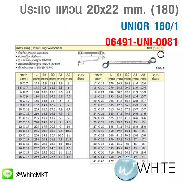 ประแจ แหวน 20x22 mm. (180) UNIOR 180/1 06491-UNI-0081 C23