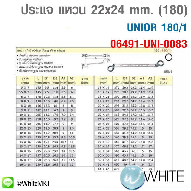 ประแจ แหวน 22x24 mm. (180) UNIOR 180/1 06491-UNI-0083 C23