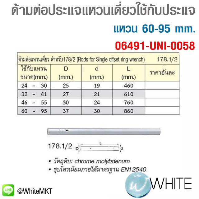 ด้ามต่อประแจ แหวนเดี่ยวใช้กับประแจ แหวน 60-95 mm. สำหรับ 178/2 UNIOR 178.1/2 06491-UNI-0058 C23