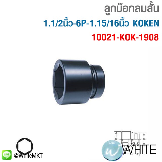 ลูกบ๊อกลมสั้น 1.1/2นิ้ว-6P-1.15/16นิ้ว KOKEN 17400A-1.15/16 10021-KOK-1908 C23