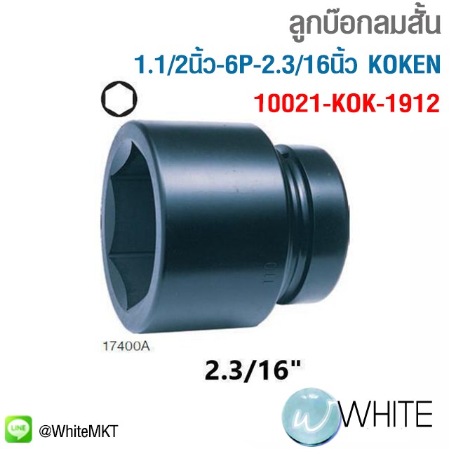 ลูกบ๊อกลมสั้น 1.1/2นิ้ว-6P-2.3/16นิ้ว KOKEN 17400A-2.3/16 10021-KOK-1912 C23