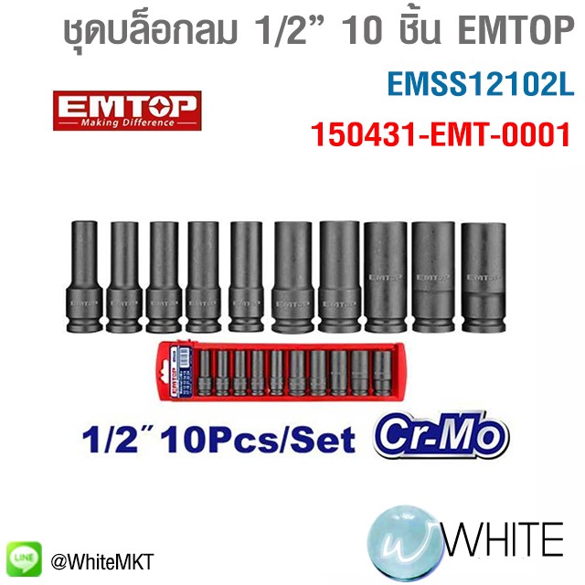 ชุดบล็อกลม 1/2" 10 ชิ้น EMTOP EMSS12102L 150431-EMT-0001 C23