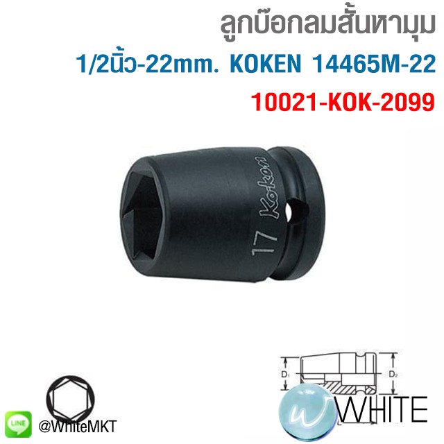 ลูกบ๊อกลมสั้นหามุม 1/2นิ้ว-22mm. KOKEN 14465M-22 10021-KOK-2099 C23