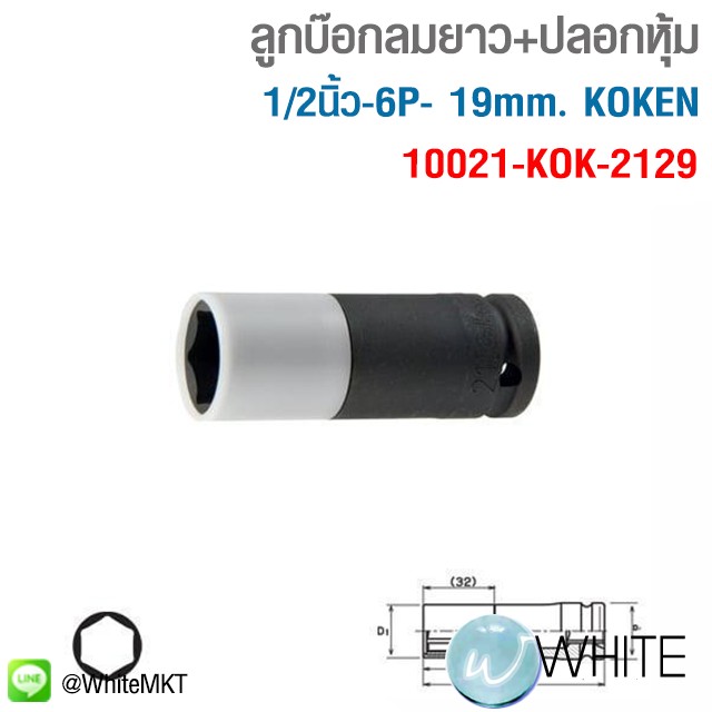 ลูกบ๊อกลมยาว+ปลอกหุ้ม 1/2นิ้ว-6P- 19mm. KOKEN 14300MSV-19 10021-KOK-2129 C23