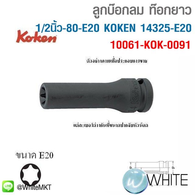 ลูกบ๊อกลม ท๊อกยาว 1/2นิ้ว-80-E20 KOKEN 14325-E20 10061-KOK-0091 C23