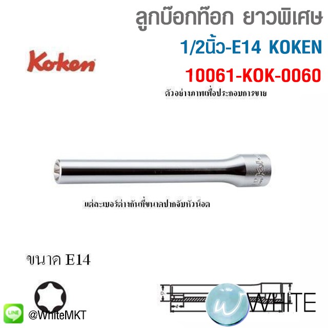 ลูกบ๊อกท๊อก ยาวพิเศษ 1/2นิ้ว-E14 KOKEN 4325(L140)-E14 10061-KOK-0060 C23