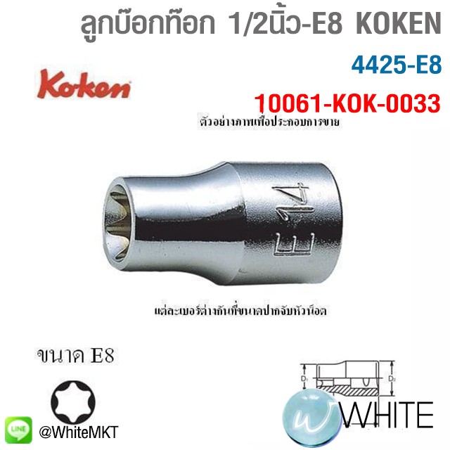 ลูกบ๊อกท๊อก 1/2นิ้ว-E8 KOKEN 4425-E8 10061-KOK-0033 C23