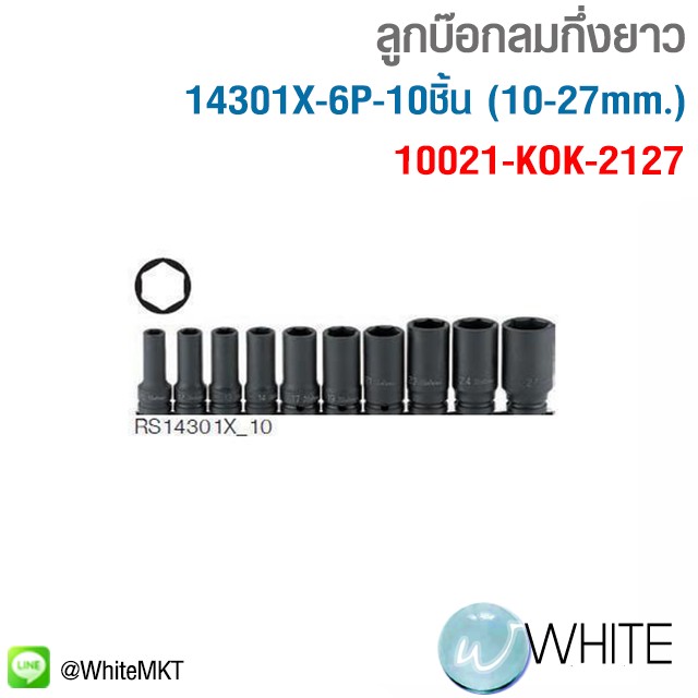 ลูกบ๊อกลมกึ่งยาว 14301X-6P-10ชิ้น (10-27mm.) KOKEN RS14301X/10 10021-KOK-2127 C23