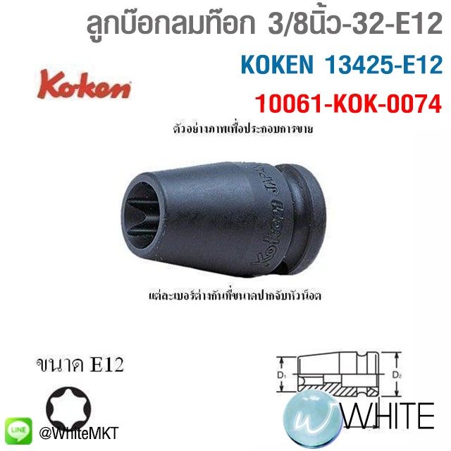 ลูกบ๊อกลมท๊อก 3/8นิ้ว-32-E12 KOKEN 13425-E12 10061-KOK-0074 C23