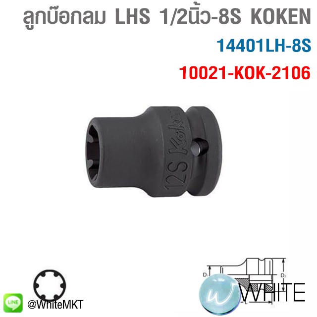 ลูกบ๊อกลม LHS 1/2นิ้ว-8S KOKEN 14401LH-8S 10021-KOK-2106 C23