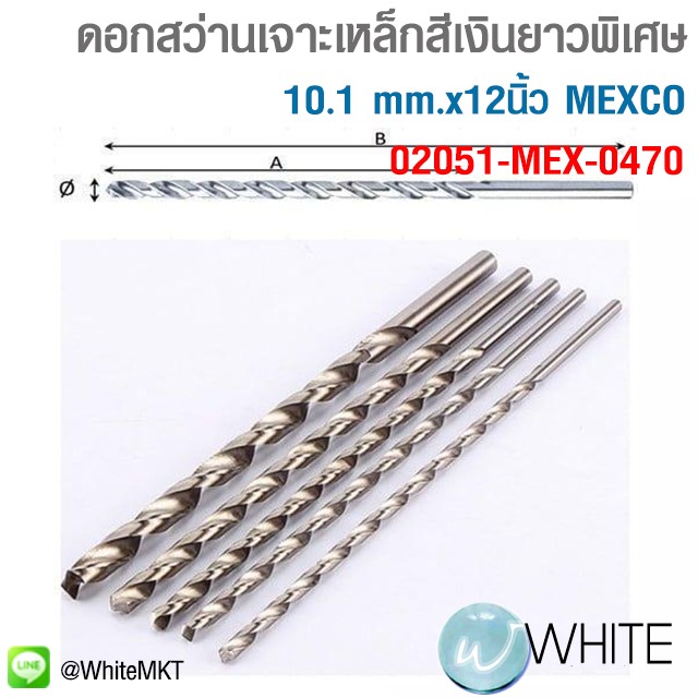 ดอกสว่านเจาะเหล็กสีเงินยาวพิเศษ 10.1 mm.x12นิ้ว MEXCO 02051-MEX-0470 C23