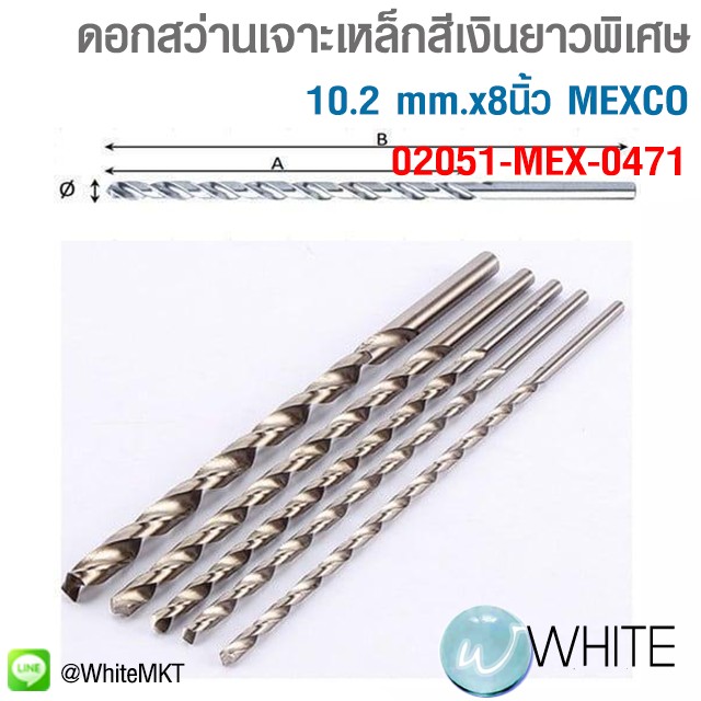 ดอกสว่านเจาะเหล็กสีเงินยาวพิเศษ 10.2 mm.x8นิ้ว MEXCO 02051-MEX-0471 C23