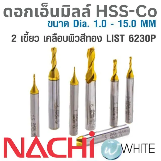 ข้อมูลเพิ่มเติมที่ https://www.whitemktstore.com/product/tag/hss-co-endmill-1-15mm-6230p-nachi