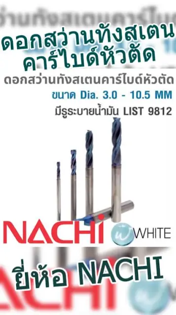 ข้อมูลเพิ่มเติม https://www.whitemktstore.com/product/tag/carbide-drill-flat-head-3-10-5mm-9812-nachi