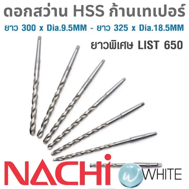 ข้อมูลเพิ่มเติมที่ https://www.whitemktstore.com/product/tag/hss-taper-shank-drill-300-9-5-325-18-5-650-nachi