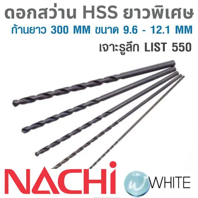 ข้อมูลเพิ่มเติมที่ https://www.whitemktstore.com/product/tag/hss-extra-long-drill-300mm-9-6-12-1mm-550-nachi