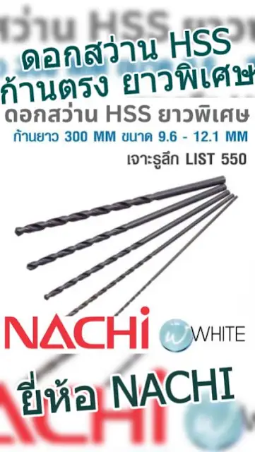 ข้อมูลเพิ่มเติม https://www.whitemktstore.com/product/tag/hss-extra-long-drill-300mm-9-6-12-1mm-550-nachi