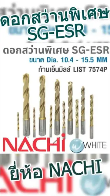 ข้อมูลเพิ่มเติม https://www.whitemktstore.com/product/tag/sg-esr-drill-1-8-5mm-6272p-nachi