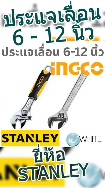 ข้อมูลเพิ่มเติม https://www.whitemktstore.com/product/tag/adjustable-wrench-ingco-stanley