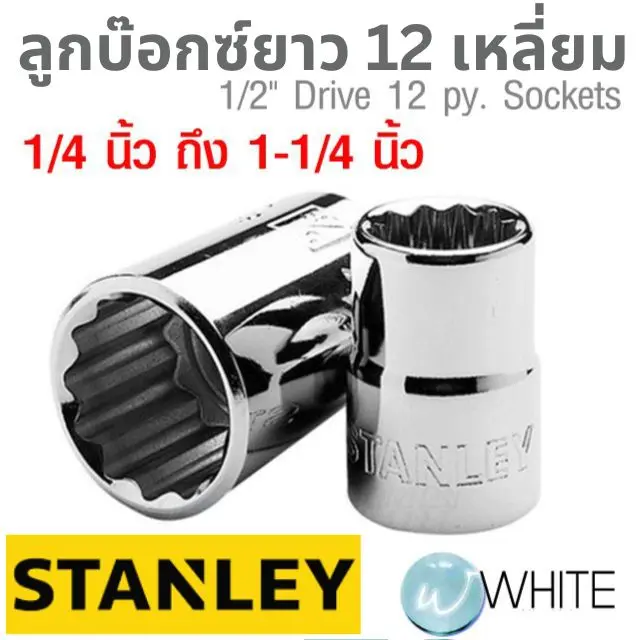 ลูกบ๊อกซ์ 12 เหลี่ยม ขนาดแกน 1/2 นิ้ว ยาว 38-43 mm ขนาด 1/4 นิ้ว ถึง 1-1/4 นิ้ว ยี่ห้อ STANLEY