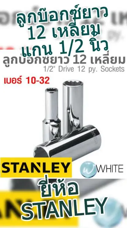 ข้อมูลเพิ่มเติม https://www.whitemktstore.com/product/tag/deep-socket-12-point-1-2in-10-32mm-stanley