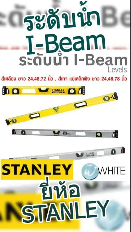 ระดับน้ำ I-Beam รุ่น FatMax™ สีเหลือง สีเทา แม่เหล็กฝัง ยาว 24 , 48 , 78 นิ้ว STANLEY #WhiteMKT