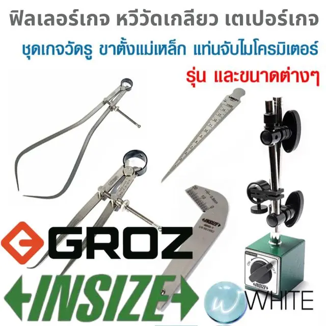 ฟิลเลอร์เกจ หวีวัดเกลียว เตเปอร์เกจ เกจวัดรอยเชื่อม เกจวัดปลายสว่าน ชุดเกจวัดรู ขาตั้งแม่เหล็ก แท่นจับไมโครมิเตอร์ คาลิปเปอร์วัดรู นอก-ใน