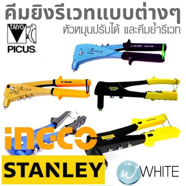 ข้อมูลเพิ่มเติมที่ https://www.whitemktstore.com/product/tag/rivet-gun-variety-stanley-taiyo-marathon-ingco