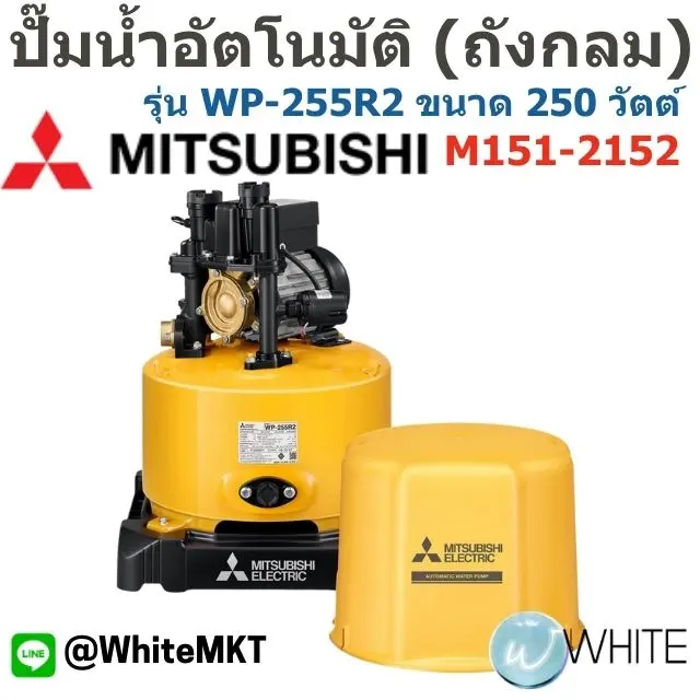 ปั๊มน้ำอัตโนมัติ รุ่น WP-255R2 ขนาด 250 วัตต์ ระยะดูด 8 เมตร ระยะส่ง 22 เมตร ขนาดท่อ 25 มม. ปริมาณน้ำ 61 ลิตร/นาที (สูงสุด), 51 ลิตร/นาที (ระยะ 12 เมตร) สำหรับบ้าน 2-3 ชั้น จุดที่ใช้น้ำ 1-6 จุด (มิตซูบิชิ) รุ่น M151-2152 ยี่ห้อ MITSUBISHI