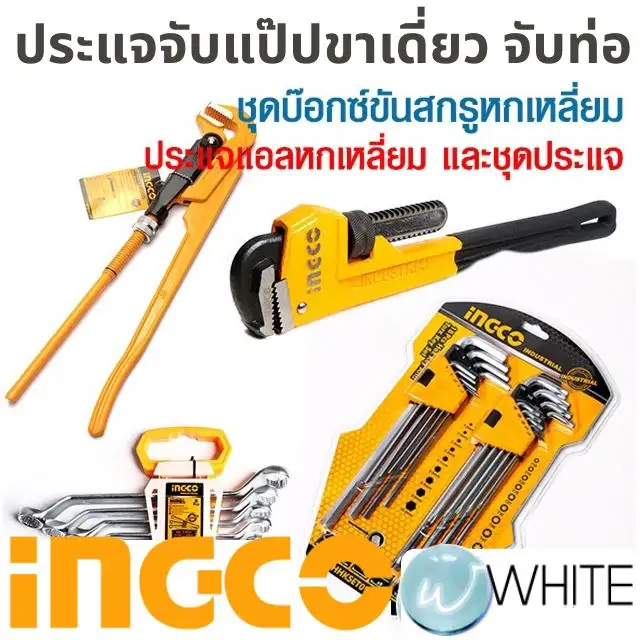 ประแจจับแป๊ปขาเดี่ยว ประแจจับท่อ ชุดบ๊อกซ์ขันสกรู6เหลี่ยม ประแจLหกเหลี่ยม และชุดประแจ ยี่ห้อ INGCO