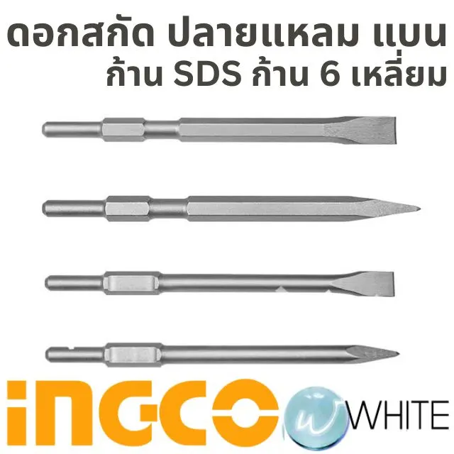 ข้อมูลเพิ่มเติมที่ https://www.whitemktstore.com/product/tag/ingco-chisel-bits-sds-hex-pointed-flat